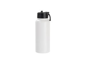 Laserable Blanks 32oz/950ml Powder Coated SS Flask w/ Wide Mouth Straw Lid & Rotating Handle(White)