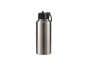 Laserable Blanks 32oz/950ml SS Flask w/ Wide Mouth Straw Lid & Rotating Handle((Silver)