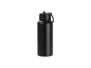 Laserable Blanks 32oz/950ml Powder Coated SS Flask w/ Wide Mouth Straw Lid & Rotating Handle((Black)