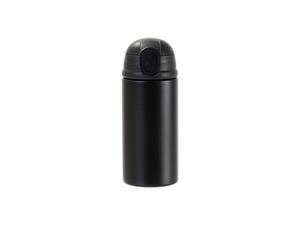 Laserable Blanks 12oz/360ml Powder Coated Kids SS Bottle with Silicon Straw&Black Lid(Black)